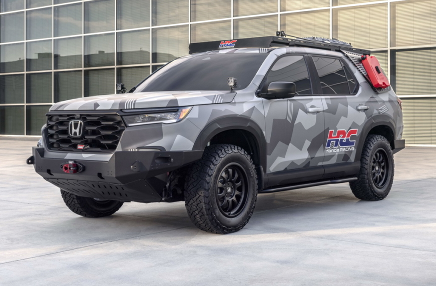 Американское отделение компании Honda также представит эффектный тюнинговый вариант модели Prologue, созданный мастерами фирмы Bismoto. Автомобиль получил пневматическую подвеску Air Ride, которая позволяет максимально уменьшить дорожный просвет, комплект 22-дюймовых дисков Brixton Forged TR09 monoblock, рейлинги и багажник на крышу от Inno, а кузов оклеен винилом цвета морской волны.