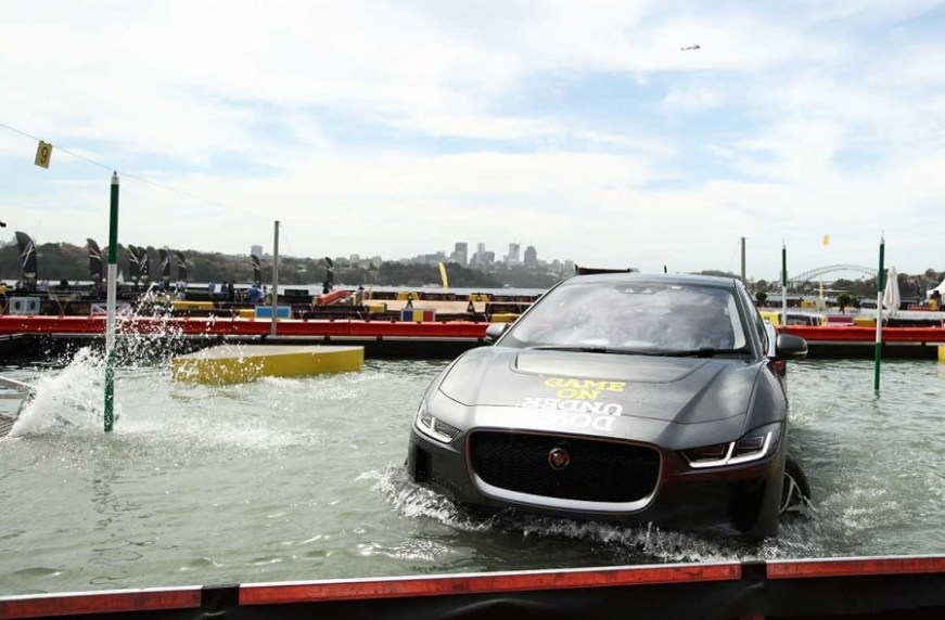 В рамках спортивного мероприятия Invictus Games Sydney 2018 (которое прошло на острове Кокату в Сиднейской гавани), электрический кроссовер I-Pace загнали на площадку, заполненную водой. В итоге, устроенный сламом машина прошла успешно.