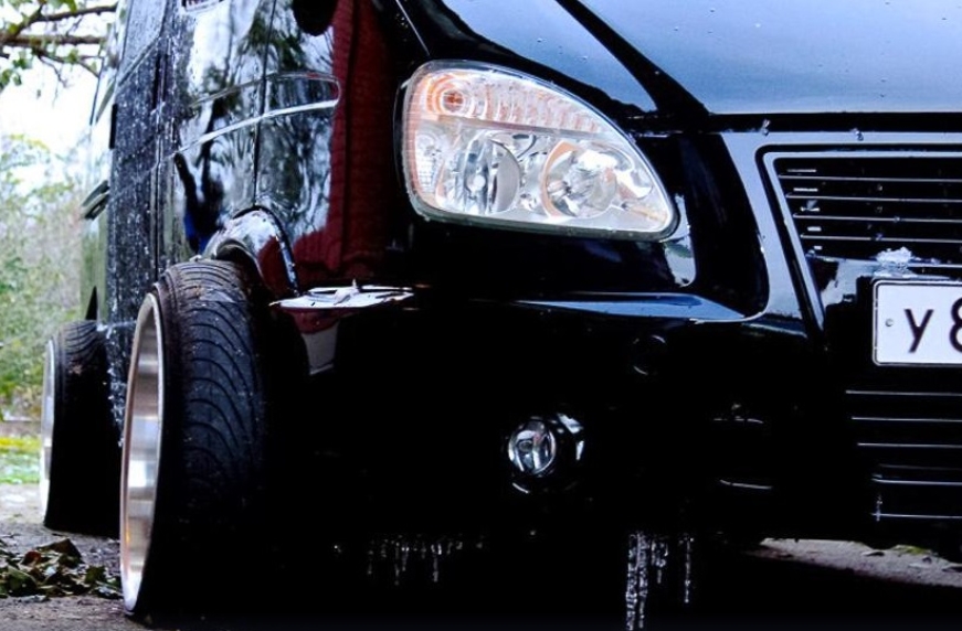 20-дюймовые колеса на низкопрофильной резине плюс уменьшенный на 10 см дорожный просвет придали «Газели» вид мускул кара. Машину перекрасили – и белое стало черным. Что касается механики, то установили независимую подвеску спереди от «Соболя», от этого младшего брата перешел и задний мост.