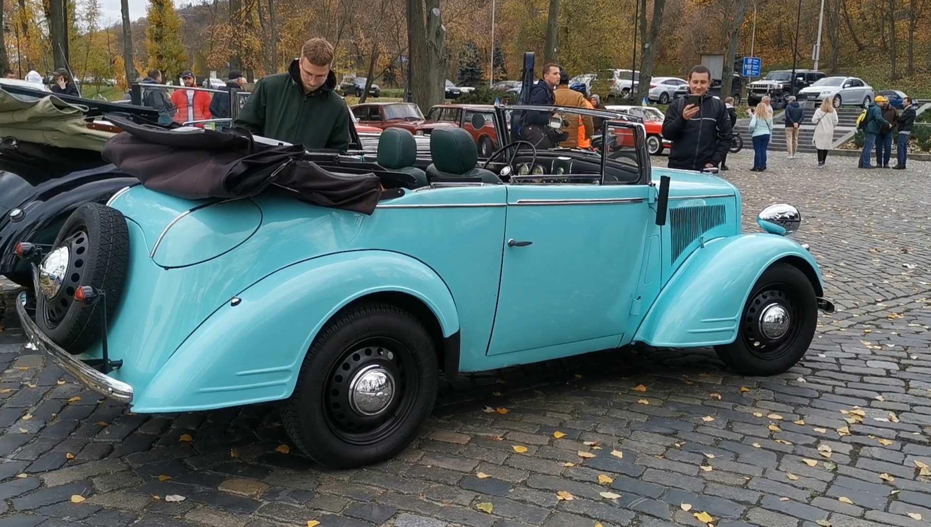 Отметим, что представленный на выставке экспонат – это не стандартный седан, а куда более редкий двухдверный кабриолет с кузовом известного дизайнерского ателье Glaser. Его мотор (1090 см куб.) в 32 л. с. разгоняет машину до 100 км/ч.