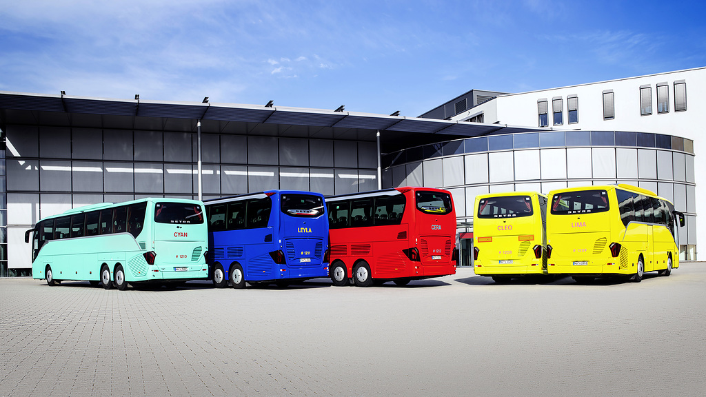 The five test vehicles of the next ComfortClass and TopClass 500 generation have been named after the colours they bear: Cleo, Leyla, Lima and Zera. (Rear)