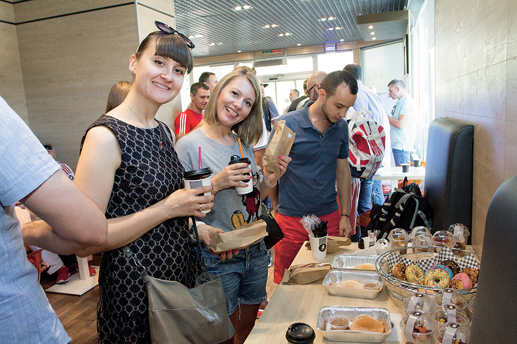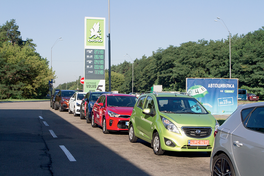 Пробег стартовал с АЗК ОККО на Броварском проспекте, где машины заправились, а журналисты подкрепились завтраком и вкусным кофе