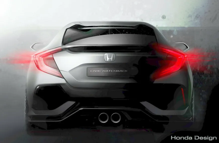 Компания Honda опубликовала первый скетч прототипа хэтчбека Civic нового поколения. Серийная модель пятидверного хэтчбека появится на европейском рынке в начале 2017 года. Производство модели наладят британском заводе в Суиндоне, в модернизацию которого инвестируют 270 миллионов евро. С конвейера будет сходить около 120 тысяч машин ежегодно.