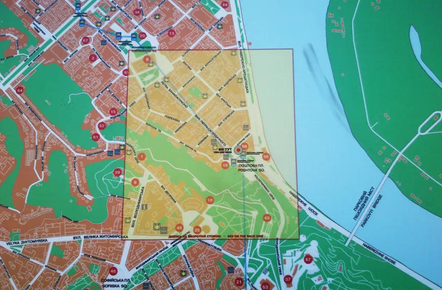 Все, что удалось заметить в этот час (а часы показывали 09:00), это пару рабочих, переносящих через дорогу разделительные блоки, одного рабочего, сидящего на еще не унесенном блоке, и группу землекопов, работающих далеко от дороги – неподалеку от церкви Рождества Христова. Соответственно, никаких «пробок» ни на Столичном шоссе, ни на Набережно-Крещатицкой, ни на Владимирском спуске, ни на Сагайдачного не наблюдалось. Так что, говорить о том, что реконструкция Почтовой площади действительно началась, и это вызывает трудности с проездом транспорта, пока нет оснований…