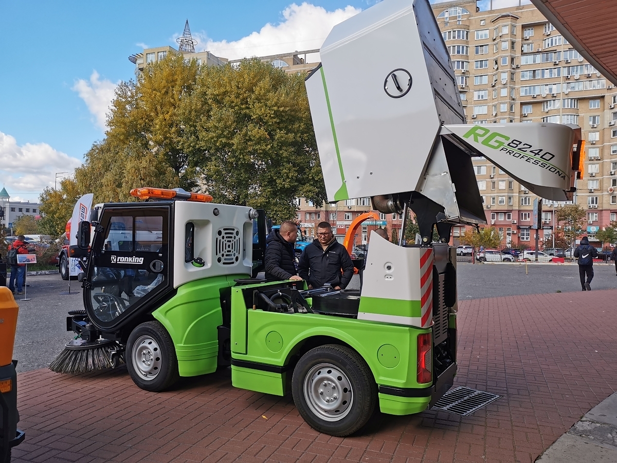 Также заслуживает внимание и подметельно-уборочная машина RG 8240 китайской марки Ronking, которую представляла компания «Дельта Крист Системз». Машина комплектуется дизелем Perkins 404D-22 мощностью 48,5 л. с. Здесь полный привод. Рабочая скорость – 10 км/ч, транспортная скорость – 27 км/ч.