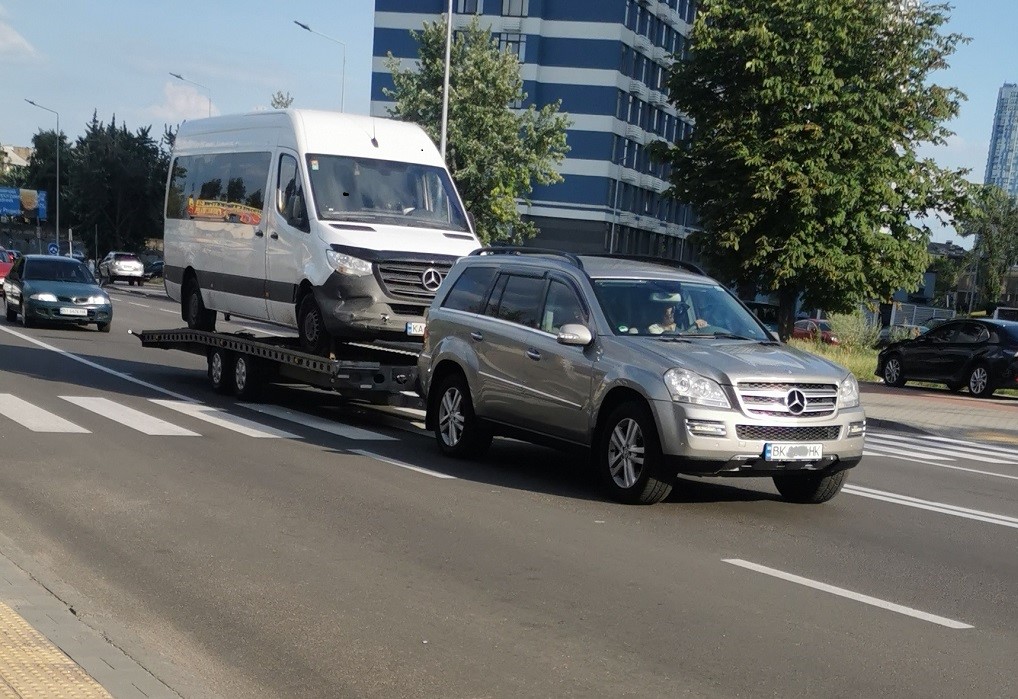 Полноразмерный люксовый кроссовер Mercedes-Benz GL может работать даже с очень тяжелыми прицепами – полной массой до 3,5 т. В основном на машинах такого класса перевозят роскошные катера или кемперы. Однако на днях в Киеве был замечен автомобиль, который тянул на двухосном трейлере длиннобазный микроавтобус Mercedes-Benz Sprinter. Такой «бус» в снаряженном состоянии весит около 2,5 т.