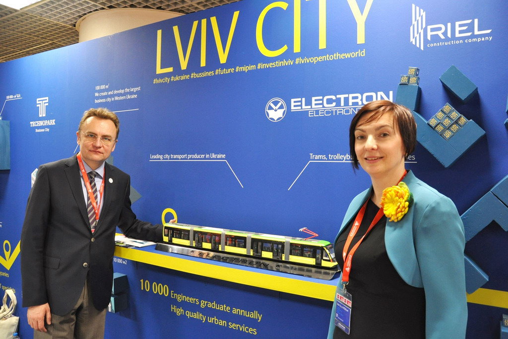 В Каннах с 15 по 18 марта проходила международная выставка коммерческой недвижимости MIPIM 2016, на которой Украину презентовал стенд LVIV CITY. На нем был представлен десяток инвестиционных проектов в сфере недвижимости, среди которых – индустриальный парк, офисные центры, проекты жилищной недвижимости. Изюминой стала красочная экспозиция концерна «Электрон» как производителя современного городского электротранспорта – трамваев, троллейбусов и электробусов. Стенд посетил и мэр Львова Андрей Садовой.