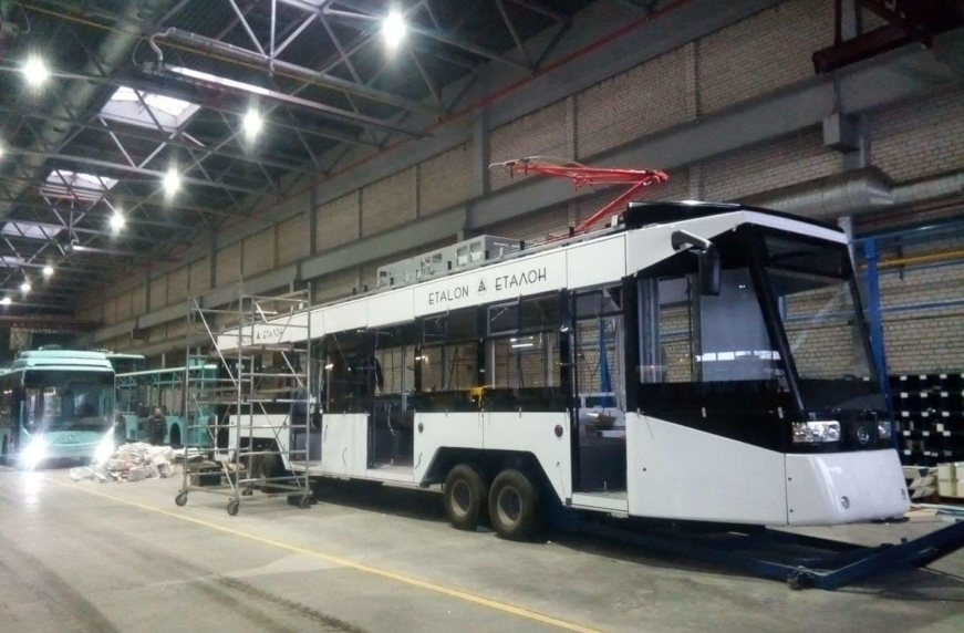 О том, что корпорация «Эталон» разрабатывает свой трамвай мы уже писали не раз. В декабре прошлого года на итоговой пресс-конференции был показан эскиз будущей машины и озвучены некоторые сведения, в частности от том, что уже собран первый каркас. И вот недавно в сети появились изображения уже практически готового кузова.