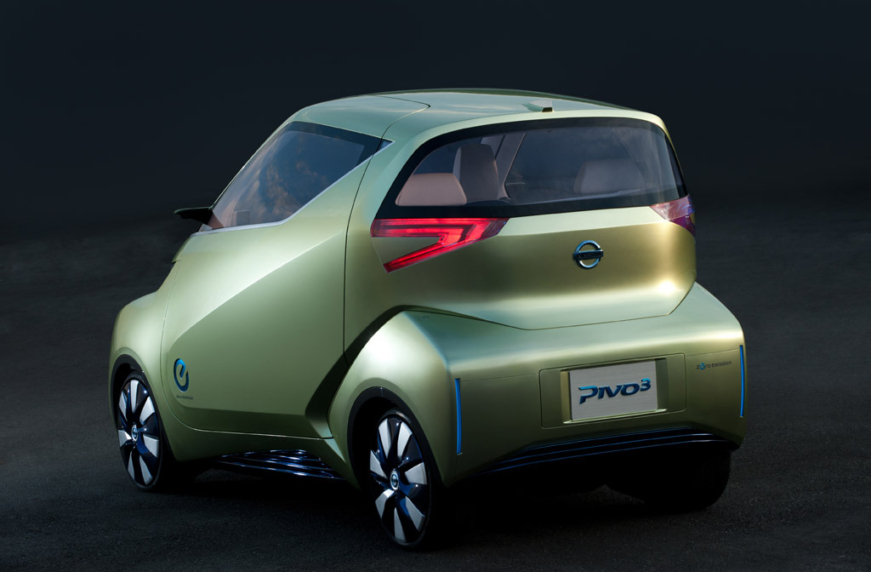Всё же, самый реалистичный Nissan Pivo 3 имеет ряд футуристических особенностей, как то 4 поворачивающихся колеса со встроенными внутрь электромоторами и водительское кресло по центру салона, мониторы, выполняющие роль зеркал заднего вида и круговую систему обзора.