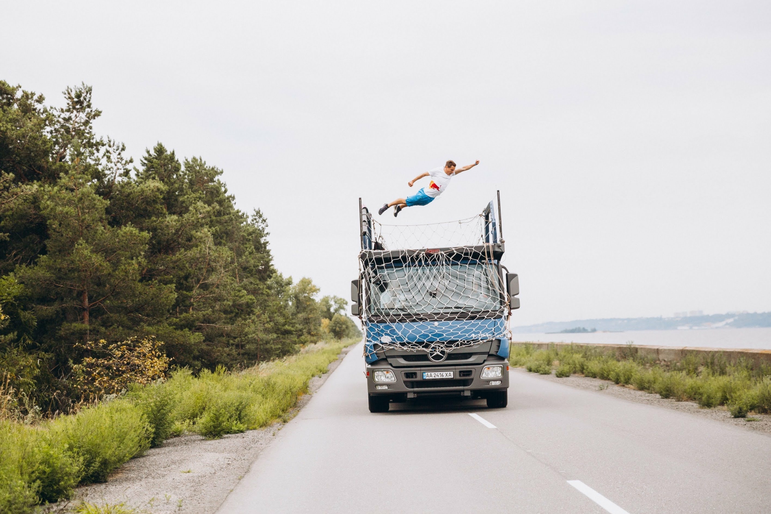 Эту безумную идею воплотил в жизнь украинец – Red Bull спортсмен Александр Титаренко. А началось все с обычного дружеского соревнования. «Это была моя идея. У меня в Мариуполе есть друг, он пытается бить различные рекорды: забрасывать мяч в корзину с центра поля, и тому подобное. Это меня мотивировало. Я подумал: надо тоже поставить какой-то рекорд».