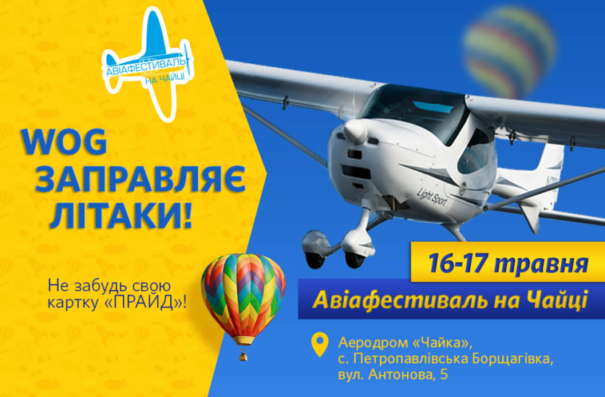 Организатор фестиваля – центральный аэроклуб имени Антонова при поддержке ОСО Украины. На фестивале ожидается более 10000 гостей. Фестиваль будет интересен гостям любого возраста и каждый получит порцию незабываемых впечатлений, потому что небо и полеты никого не оставляют равнодушными. А WOG заправляет не только самолеты… Каждый гость сможет наслаждаться «найкавовішою кавою» и фирменными хот-догами от WOG! Твое удостоверение водителя и карта программы лояльности ПРАЙД гарантируют особые привилегии!!!
