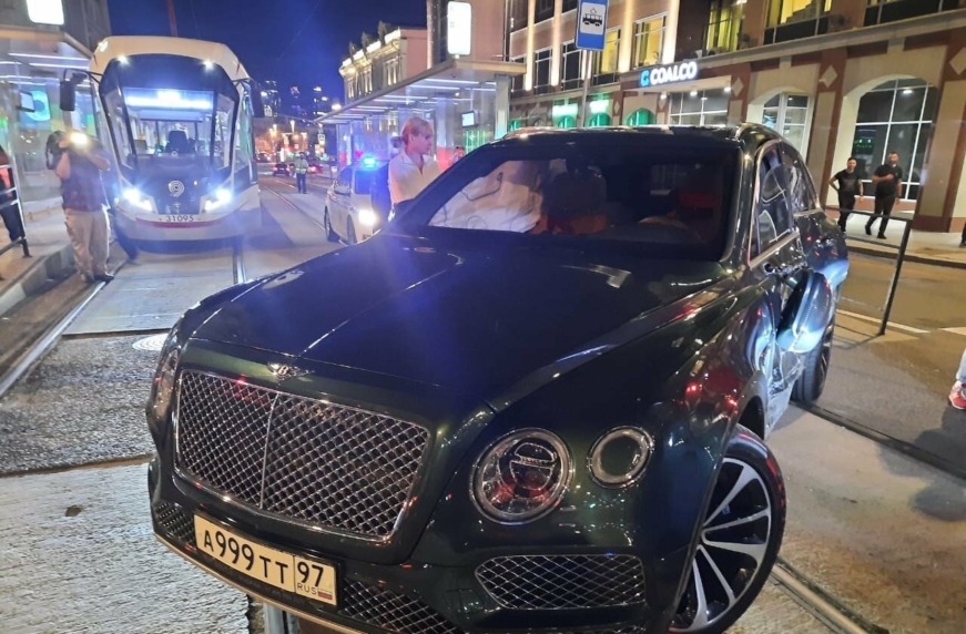 Столкновение Bentley Bentayga с трамваем показали на фото и видео