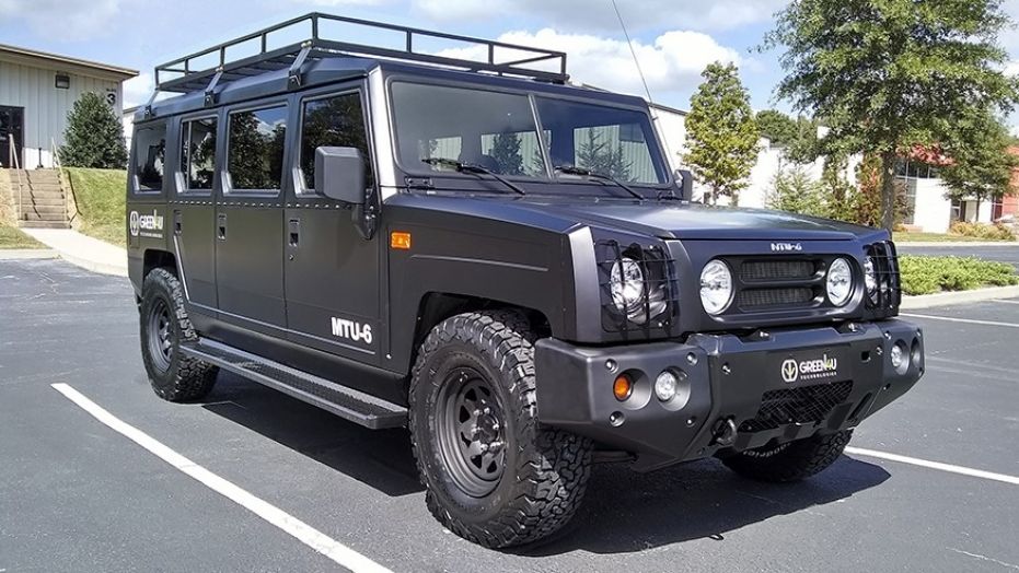 Green4U представила сразу две электромодели – гражданский и “боевой” внедорожники (называются Enova и MTU-6 соответственно), у которых… 6 дверей. Они рассчитаны на корпоративные автопарки. При этом в дизайне гражданской модели можно узнать черты внедорожника Toyota Land Cruiser Prado.