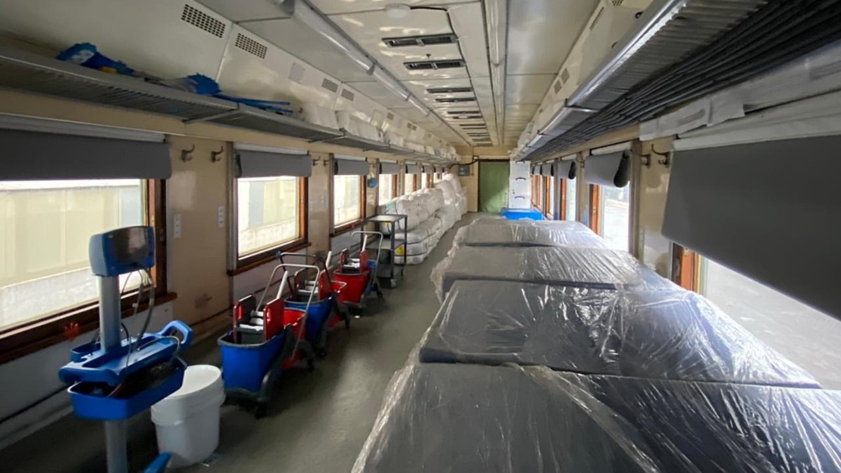 Поезд-минигоспиталь состоит из нескольких вагонов, включая вагон интенсивной терапии. По данным Минздрава, международная медицинская гуманитарная организация «Врачи без границ» в настоящее время ищут украинских специалистов, которые могут приобщиться к работе команды эвакуационного поезда.