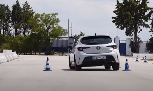 Изначально хот-хэтч испытали в тесте на слалом. Corolla GR Sport преодолел полосу препятствий за 24,5 секунды. Этот результат, увы, не лучший в классе. Например, Honda HR-V была более уверенной у этом испытании.