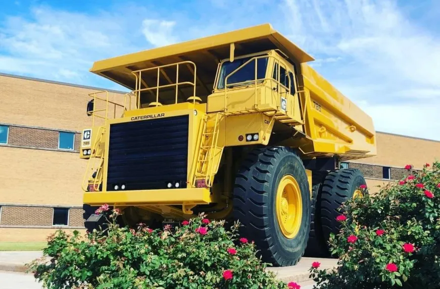 Знаковый карьерный самосвал Сaterpillar был увековечен на постаменте