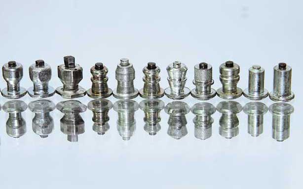 В продаже есть шипы с разной формой корпуса – начиная с дешевых однофланцевых (крайний справа) и до самых различных многофланцевых и грушеобразных (слева). |