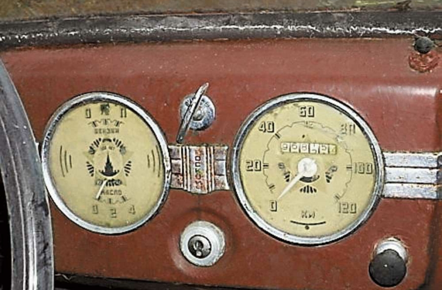 Юбилейная версия первого из «Москвичей» отличалась изображением звезд и Спасской башни московского Кремля на комбинации приборов (фото слева). | |