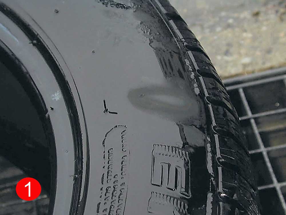 Образование «теневых» пятен (1) и пузырей (2) на боковине шины – признаки ее повреждения. | |