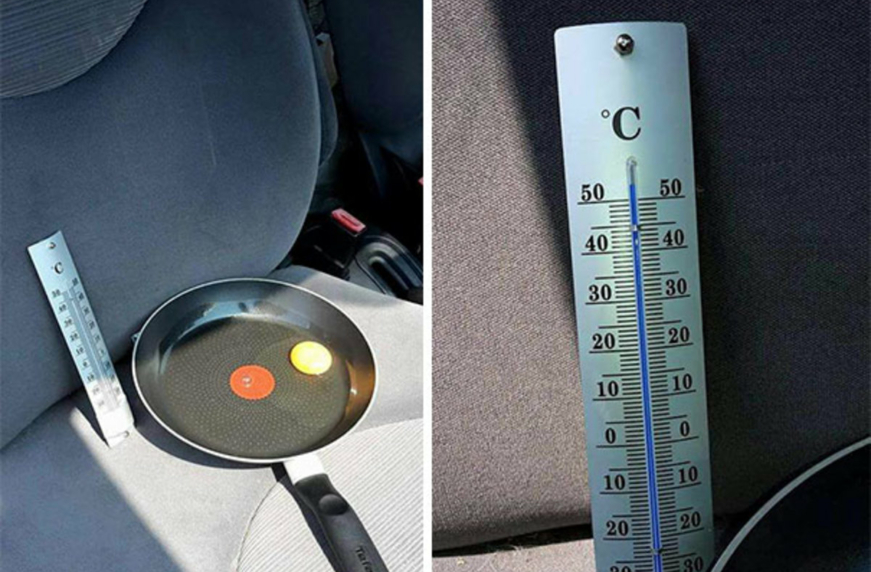 А эта фотография наглядно демонстрирует, почему нельзя оставлять в машине детей и животных. Вот что будет, если оставить в авто сырое яйцо на полчаса-час.