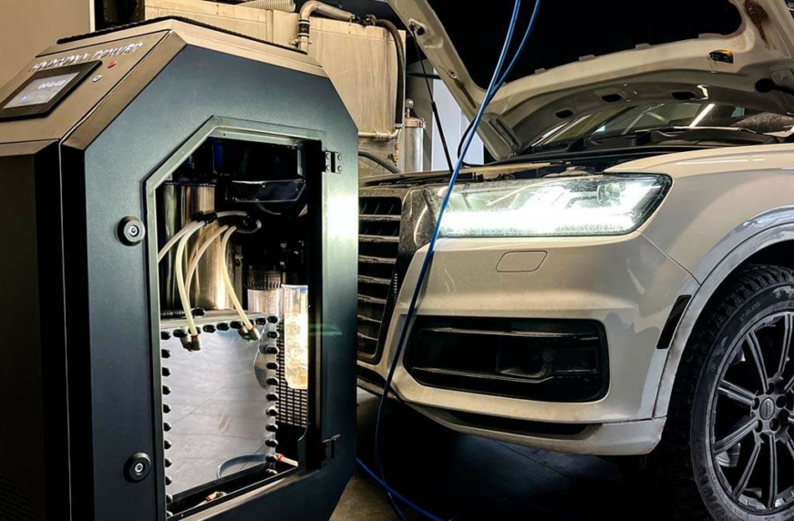 Более того, такая водородная система на борту производит еще и очистку двигателя, раскоксовывая компрессионные кольца. При этом очищаются также поршни, выпускной коллектор, свечи зажигания, форсунки, катализатор, а также увеличивается регенерация сажевого фильтра, что продлевает его ресурс на 33%. И все это без демонтажа.