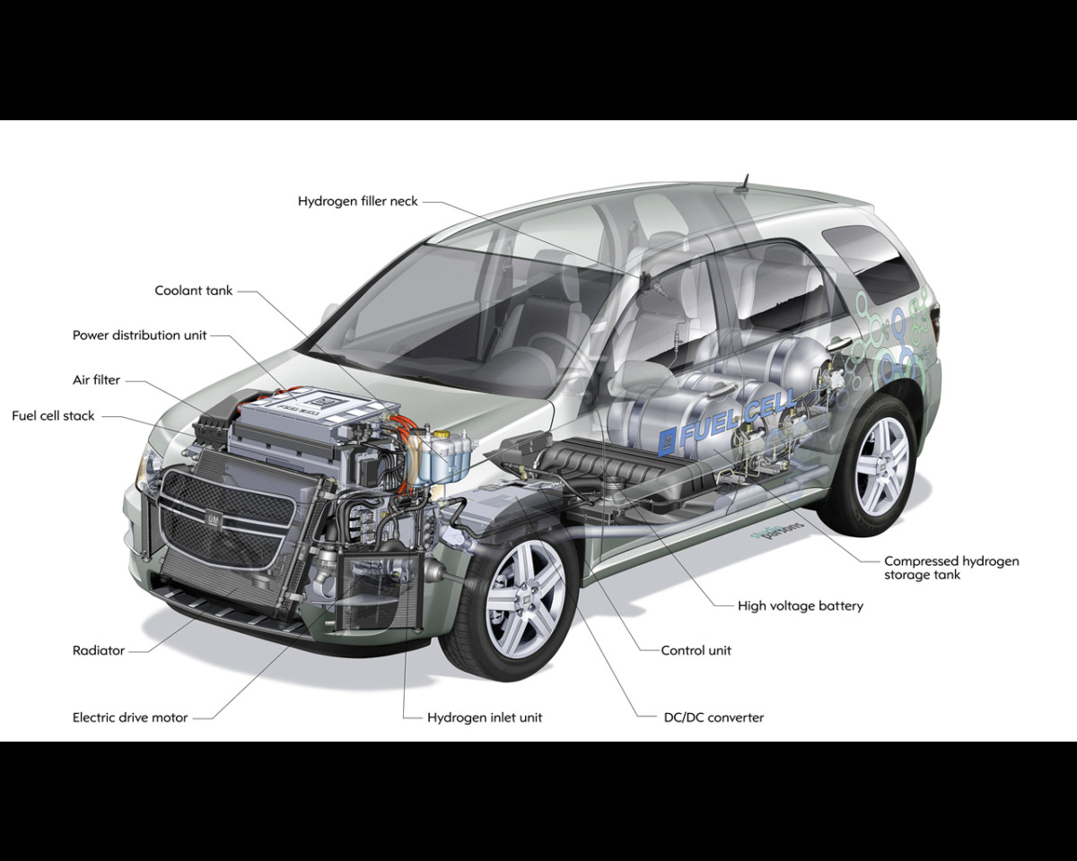Ни у одного из брендов GM пока еще нет серийного автомобиля на топливных элементах, но компания работает над этой технологией уже в течение многих лет. В 2008 году GM начал масштабные трехлетнее испытания, снабдив 100 внедорожников Chevy Equinox водородными резервуарами и силовой установкой на топливных элементах.