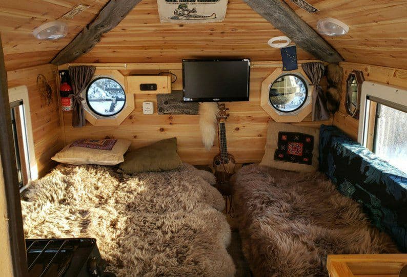 Путешествовать в кемпере, что и говорить, романтично. А представьте, если это эксклюзивный дом на колесах, сделанный из натурального дерева, причем своими руками, а за окном еще и красивейшие пейзажи Аляски… Получается настоящее райское наслождение. Причем для этого совсем не нужно быть миллионером. И тому пример Тим Джонсон, которому вся эта затея обошлась в 26 тыс. долларов и три месяца работы, сообщает LifeStyleCamper.