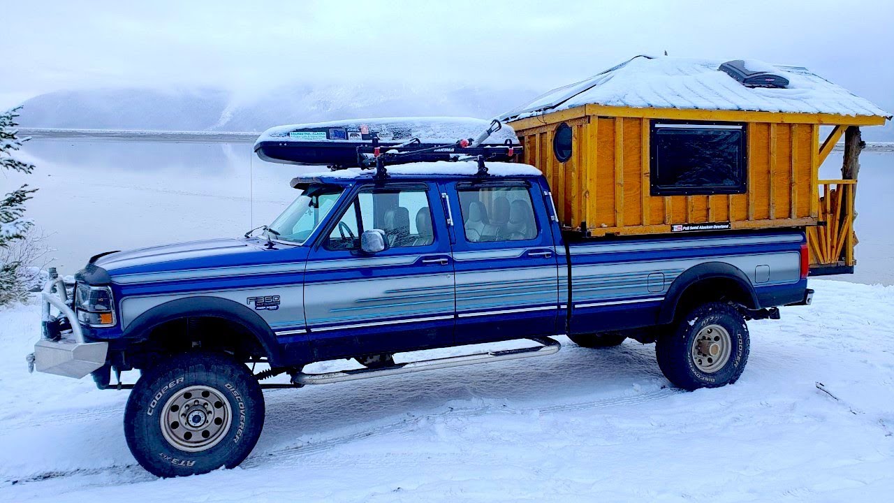 Здесь нужно сказать, что половина из этой суммы ушла на приобретение и доводку пикапа F-350 1996 года, а вторая половина затрачена на сборку дома. Сама деревянная надстройка установлена непосредственно в кузове машины и покрыта специальным водоотталкивающим лаком.