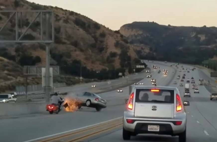 Агрессивный мотоциклист спровоцировал страшное ДТП в США