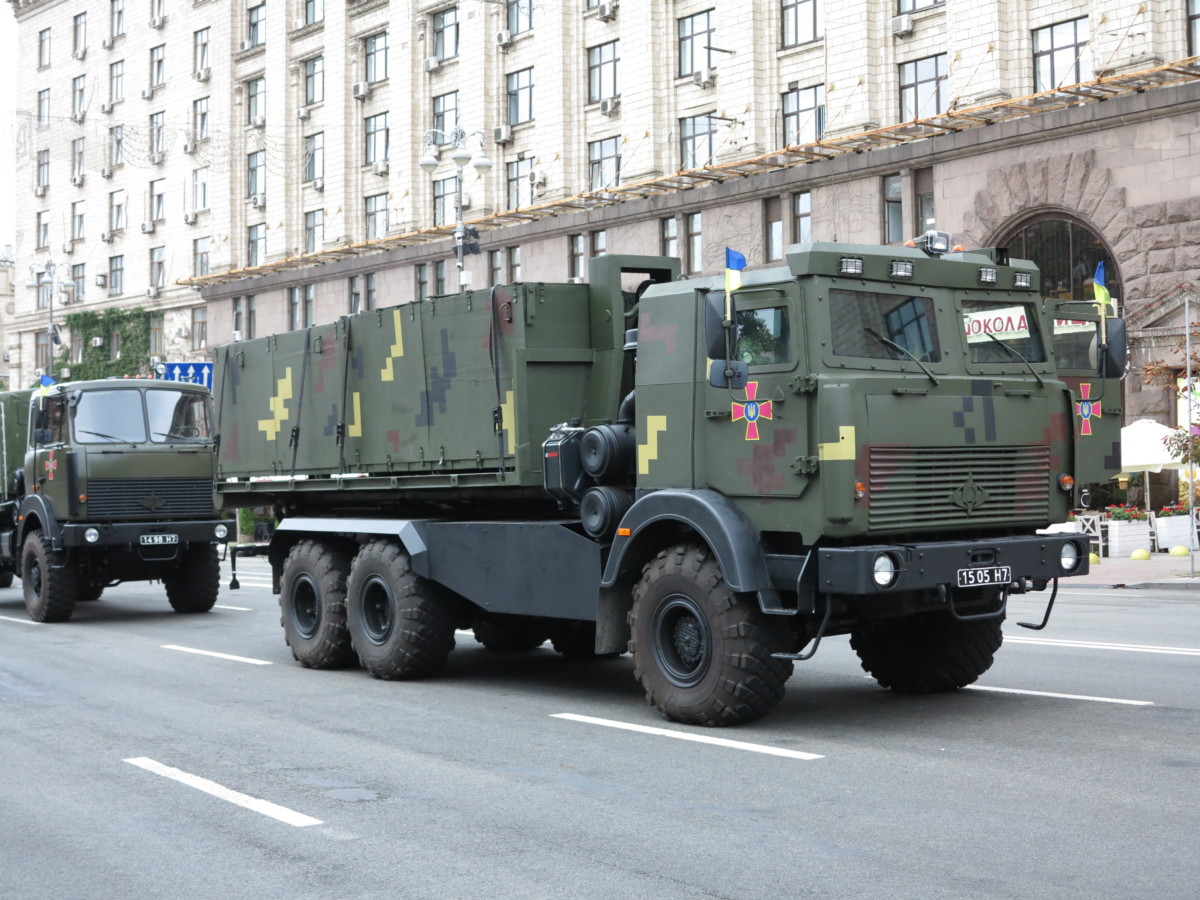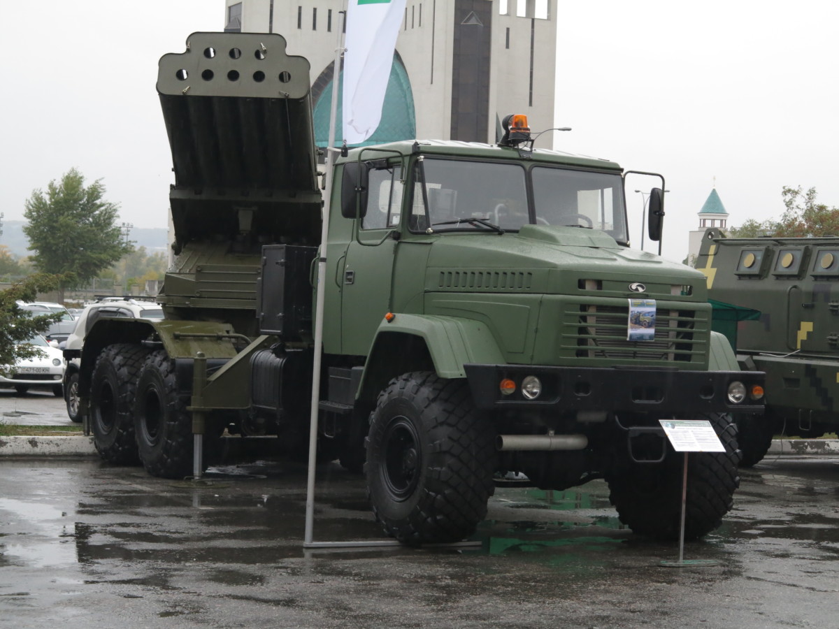 ПАО «АвтоКрАЗ» продемонстрировал систему залпового огня 9К57 «Ураган». Данный комплекс установлен на полноприводном шасси КрАЗ-63221 (6х6). Напомним, что РСЗО «Ураган» имеет 16 направляющих, калибр – 220 мм. Максимальная дальность стрельбы – до 35,8 км. Площадь поражения – 426 тыс. м кв.