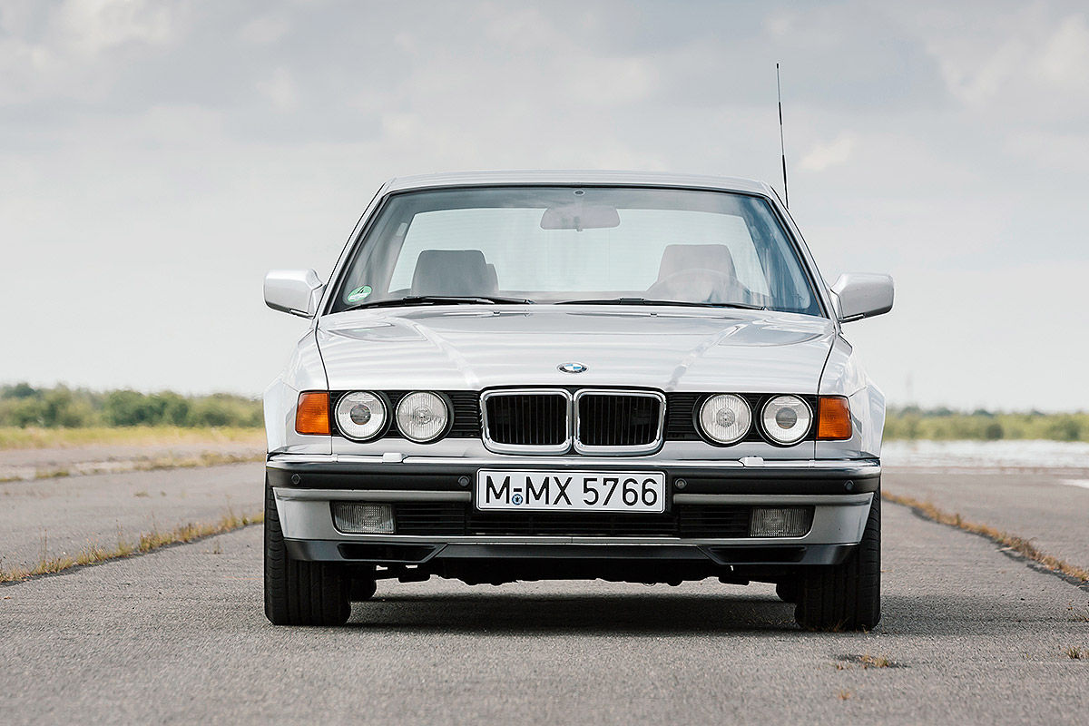 Перший німецький серійний дванадцятициліндровий двигун після війни! 1987 року це було чимось не звичайним. Кузов, спроектований Ercole Spada, виглядав витонченим та монолітним. Через цікавий дизайн новий розкішний BMW незабаром став «німецьким Ягуаром». Випускалися стандартні 750i, а також видовжені на 30 см моделі – 750l. Вільне місце виділялося для ніг заднього пасажира. Через невеликі внутрішні габарити і заточеність моделі на водія цей кузов був не дуже популярний у бізнес-класі. Його віддавали перевагу любителям гострих відчуттів з одночасним комфортом.