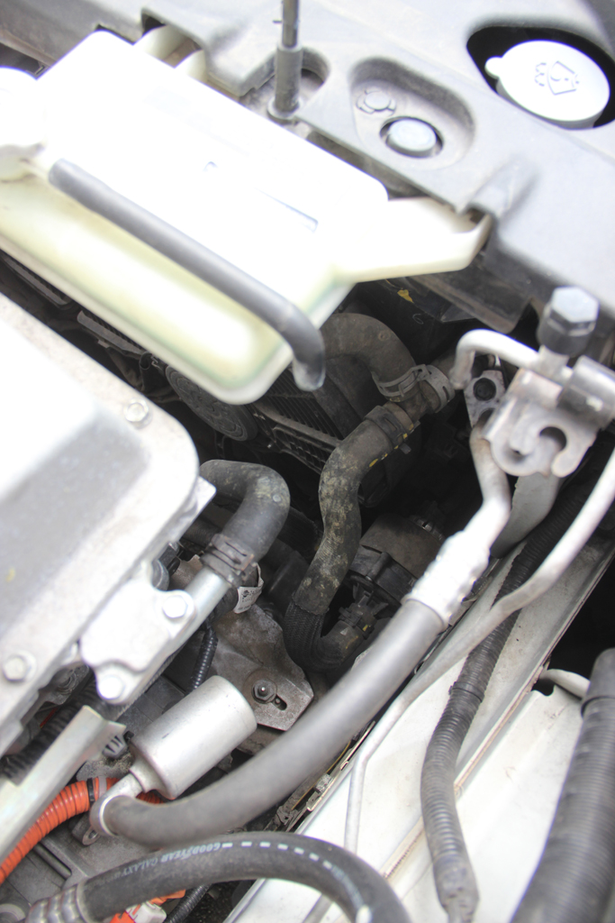 Внешне электромотор Leaf напоминает обычный ДВС. Силовые провода с опасным напряжением в 360 В выделены оранжевым цветом. Большинство авто на нашем рынке оснащены 24 kWh батареей с максимальным запасом хода в 135 км.