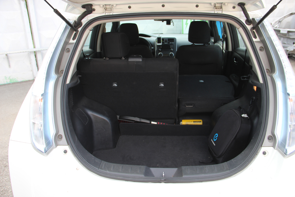 По сравнению с «хетчами» одноклассниками и родственной Nissan Tiida багажник самых распространенных Leaf с 2013 г.в. (на фото) заметно больше – 370 л против 272 л соответственно и, к примеру, 330 л у Renault Megane, 340 л у Kia Cee’d и 285 л у Mitsubishi Lancer X. А вот у Leaf до модернизации багажник был меньше – всего 330 л.