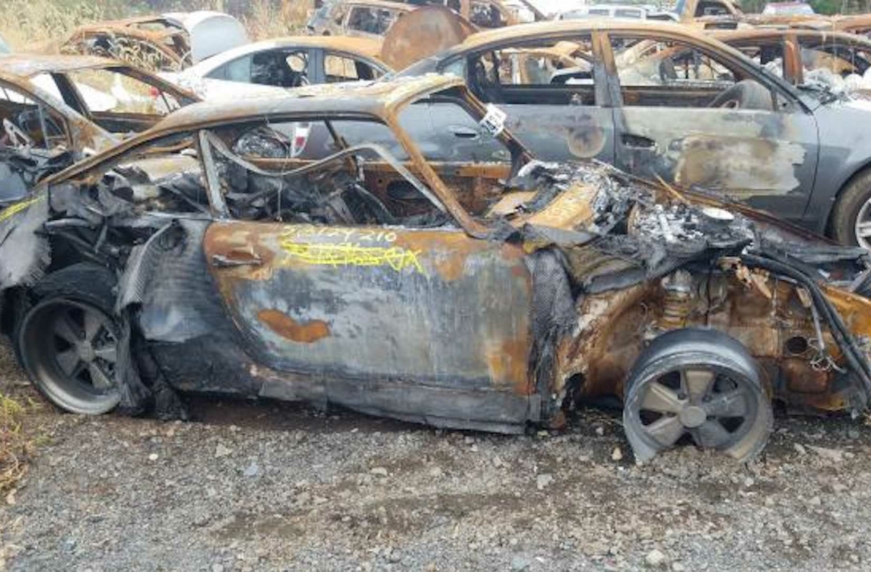 Цей спорткар пережив щось жахливе — він став випадковою жертвою пожежі, яка почалася в приватному будинку, поширилася за його межі і знищила кілька автомобілів. Зокрема і 911, який ми бачимо на фото.