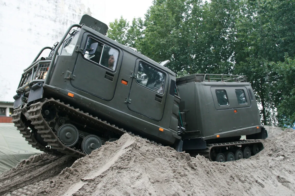 Максимальна швидкість становить 55 км/год, а на плаву – 4,7 км/ч. Примітно, що машина забезпечує питомий тиск на ґрунт лише 17 кРа, що менше ніж нога людини. Такий всюдихід чудово підходить для арктичної експедиції, оскільки пристосований працювати при температурі повітря до – 55С. У нашому випадку Bandvagn 206 укомплектований ще краном-маніпулятором Palfinger PK 8500