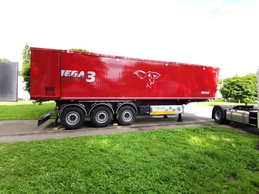 Объем кузова, правда, чуть меньший – 50 против 52 кубометров. Гидроцилинды применяются фирм Hyva или Penta. Устанавливается мощная упорная стойка поднятого кузова. Фурнитура заднего борта - Nevpa. Оси – производства SAF, тормозная система – Knorr-Bremse или Wabco. В качестве опций предлагается водонепроницаемый тент, в том числе с приводом системы свертывания-развертывания, а также бак для воды.
