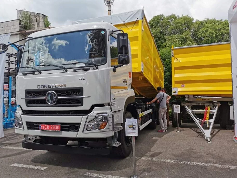 Из украинских производителей также нужно назвать завод «АЛЕКО», прицепная техника и кузовные надстройки которого демонстрировались сразу на нескольких стендах - в составе автопоездов-зерновозов с грузовиками раличных производителей. Так на стенде компании «Голекс» грузовик Dongfeng DFH 3330FJ80 (6х6) был оснащен самосвальным 30-кубовым кузовом АЛЕКО.