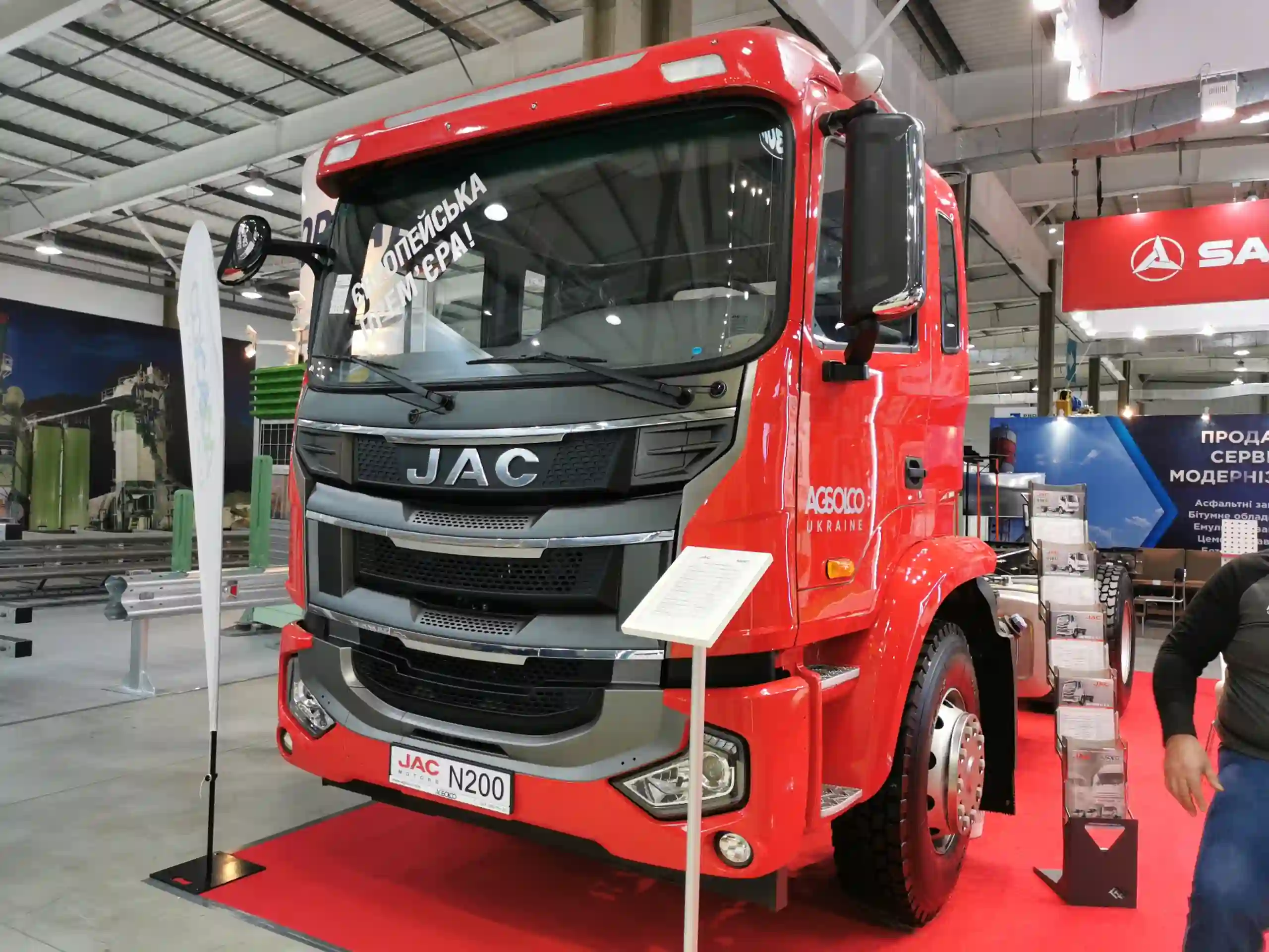 Рядом на стенде демонстрируется еще одна европейская премьера – JAC N200. Это первая модель тяжелого класса от данного производителя, официально представленная на украинском рынке. Ее полная масса составляет 19 980 кг, а грузоподъемность шасси достигает – 13 780 кг.