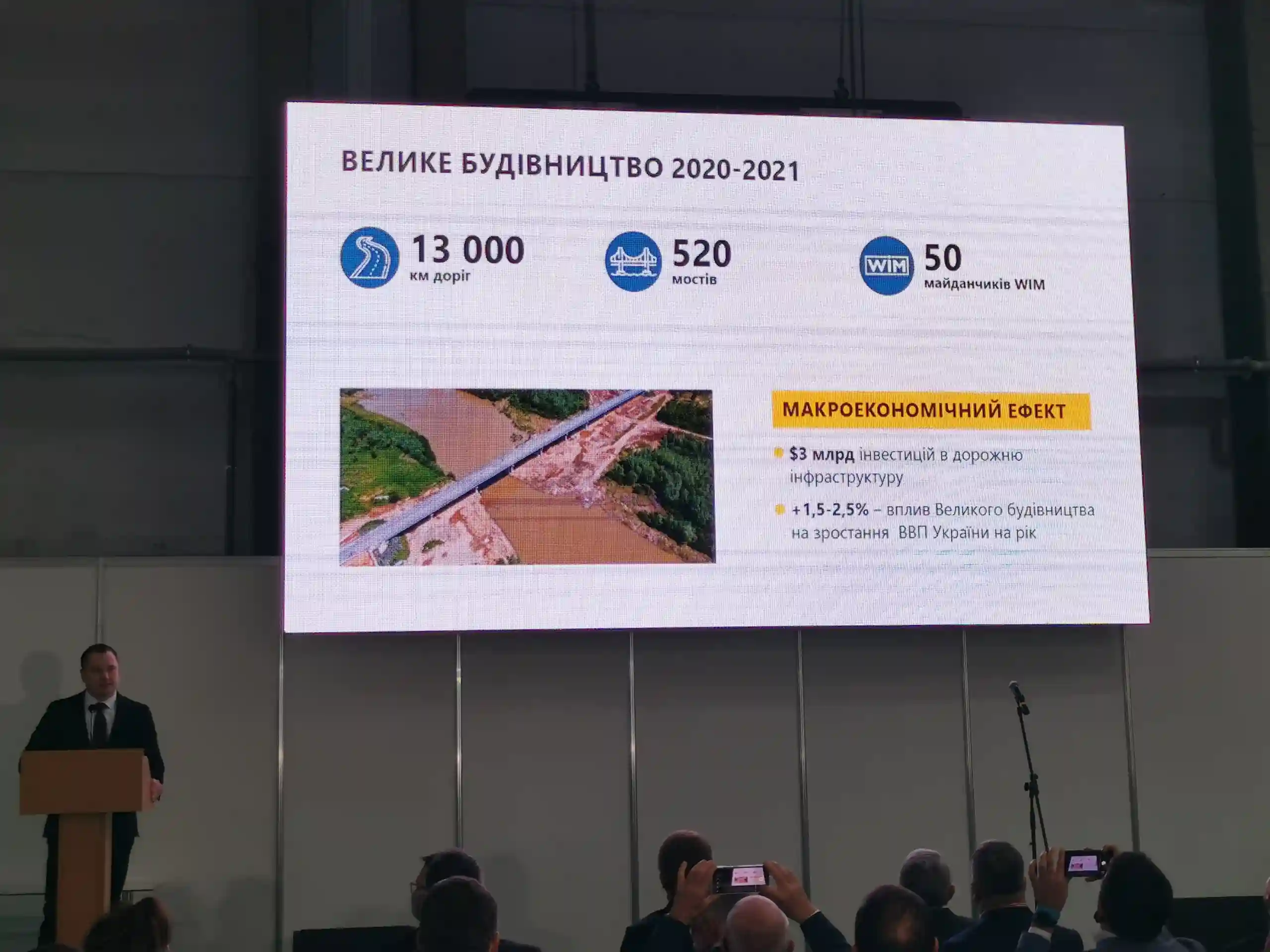 Сегодня в Украине полным ходом идет обновление дорог в рамках государственной программы «Велике будівництво». Как отметил на открытии выставки первый заместитель «Укравтодора» Андрей Ивко, на 1 ноября выполнено 99% плана Кабмина по выравнивающим и верхним слоям. В 2020 – 2021 гг. сделано 13 000 км дорог, 520 мостов, а также обустроено 50 площадок с комплексами динамического взвешивания транспорта WIM. До 2024 года планируется обновить 24 000 км дорог, 1400 мостов и обустроить 500 км велодорожек в крупнейших агломератах Украины.