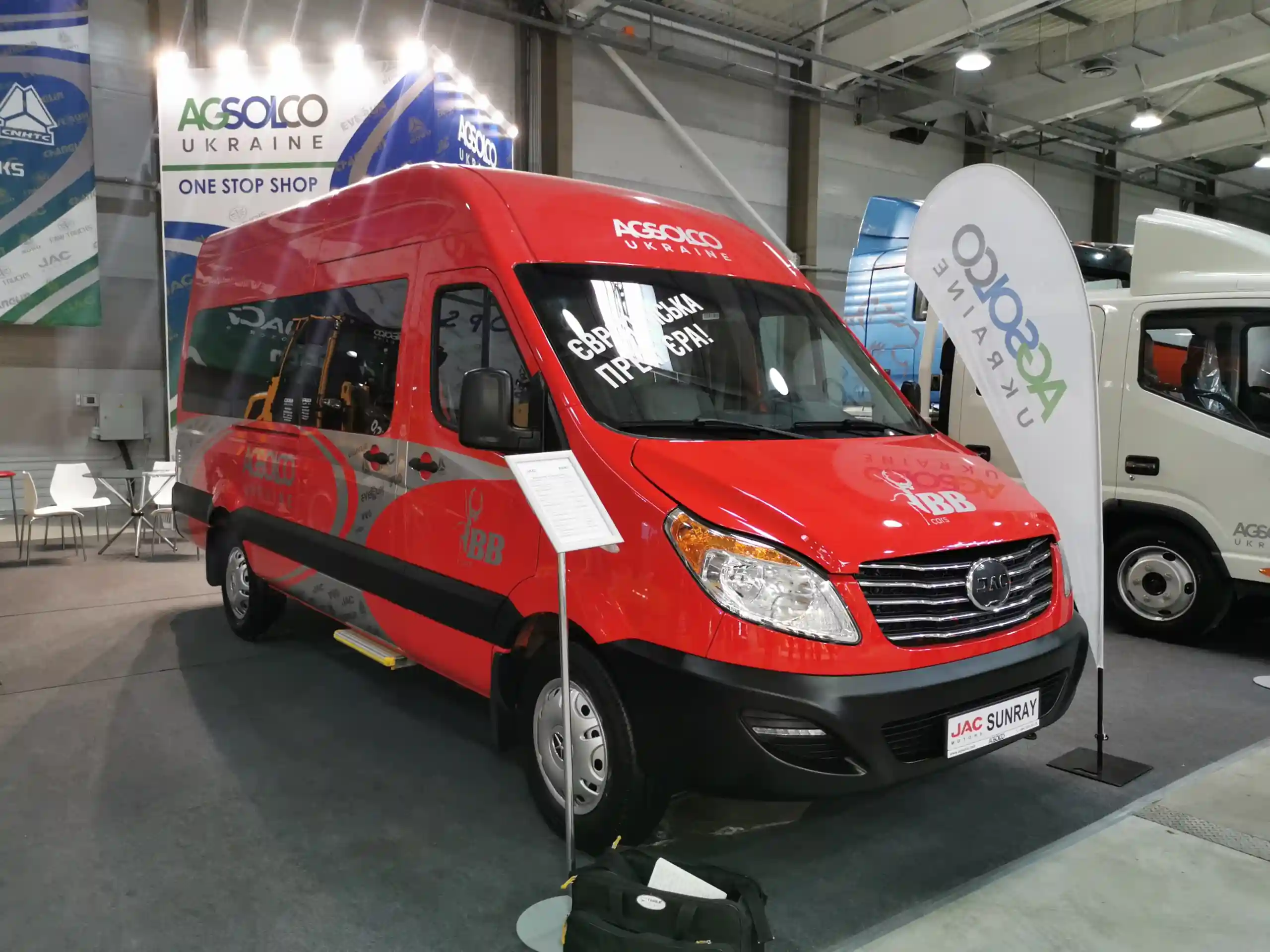 На стенде «Аксолко Украина» также представлен новый микроавтобус JAC Sunray – длиной 5990 мм, с салоном на 15+1 мест.