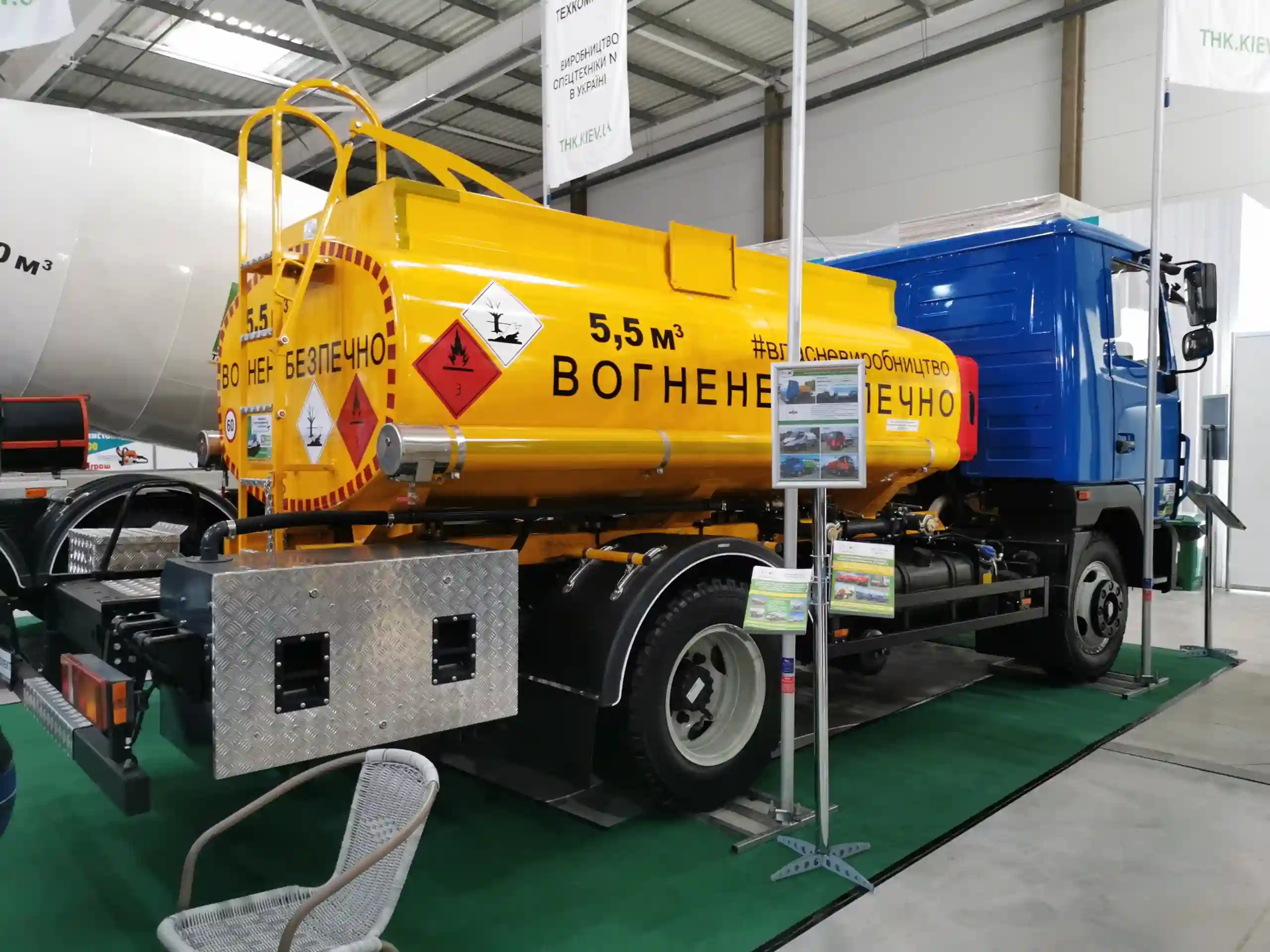 Вторая машина – это автотопливозаправщик АТЗ-5,5 на шасси МАЗ-4371 «Корнет». Цистерна объемом 5,5 м куб. изготовлена на мощностях «Техкомплекта». Отметим, что на предприятии производят АТЗ емкостью от 4 до 20 кубов.