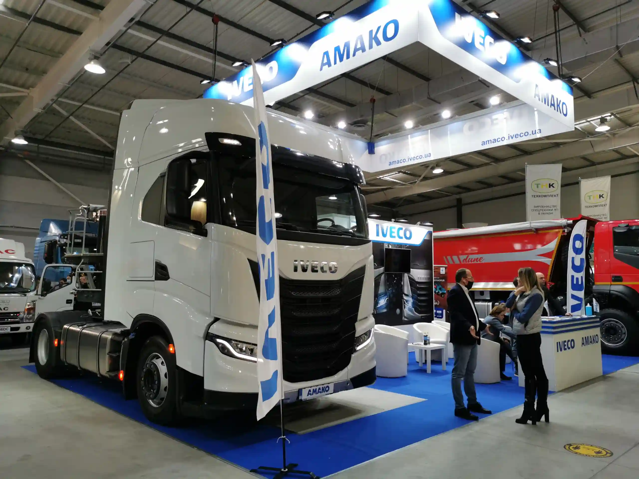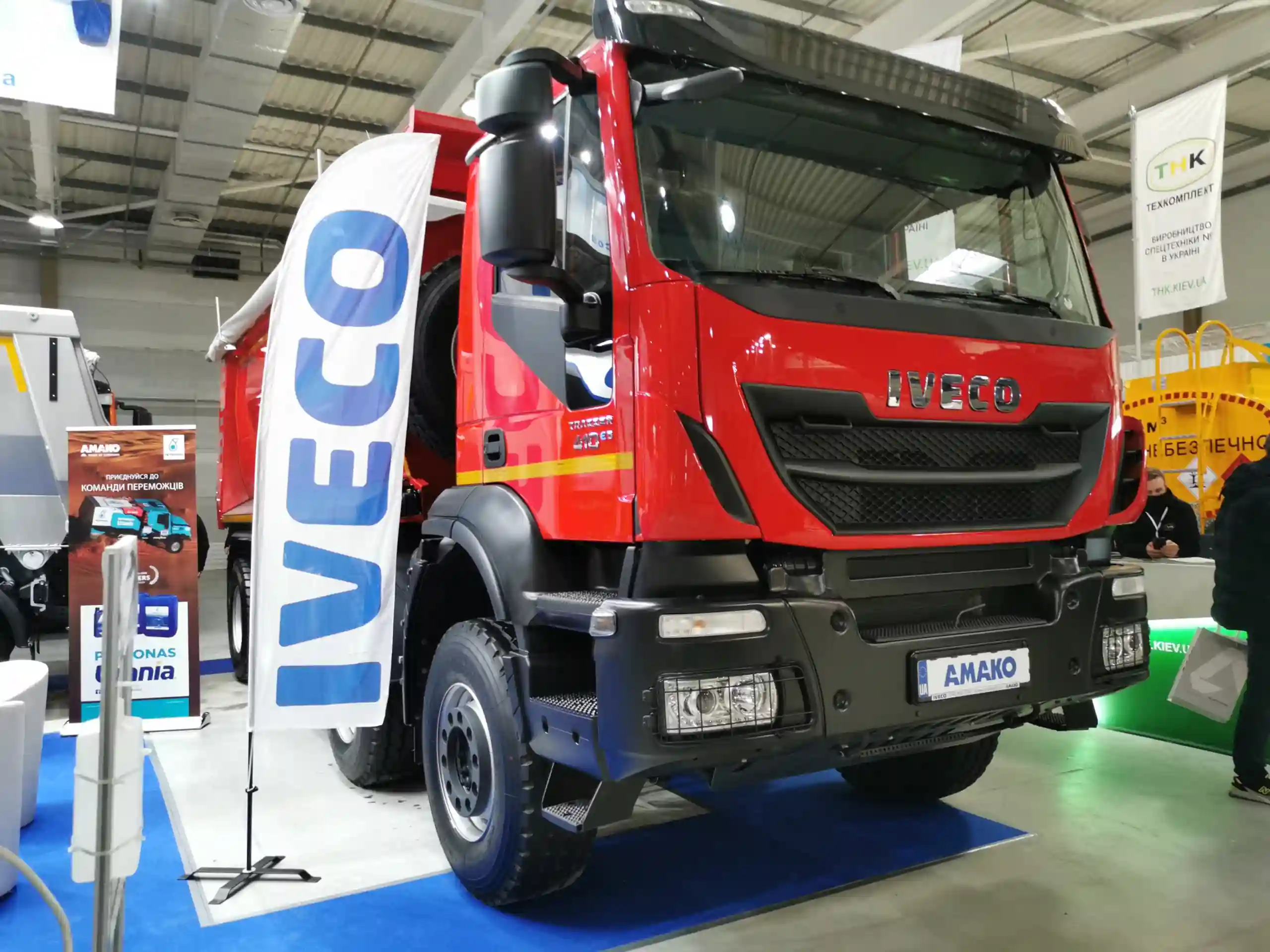 Компания «АМАКО Украина» представляет на своем стенде самую популярную модель IVECO Trakker (8х4) – четырехосный самосвал с полукруглым кузовом итальянского производителя Сantoni.