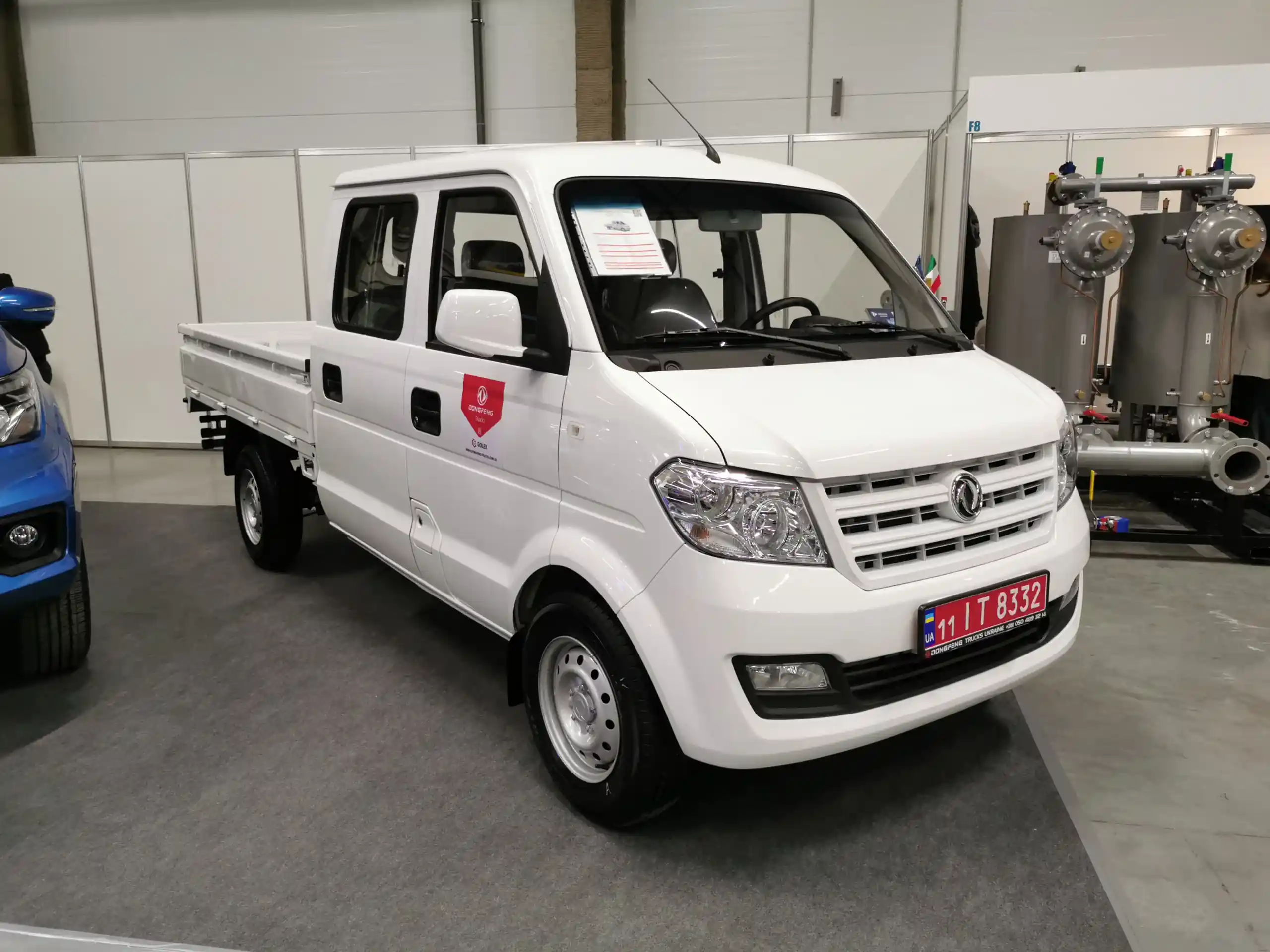 Компания «Голекс» - официальный дилер Dongfeng в Украине показывает на стенде технику от мала до велика. Начнем с бортового грузовичка с двухрядной кабиной на 5 мест.