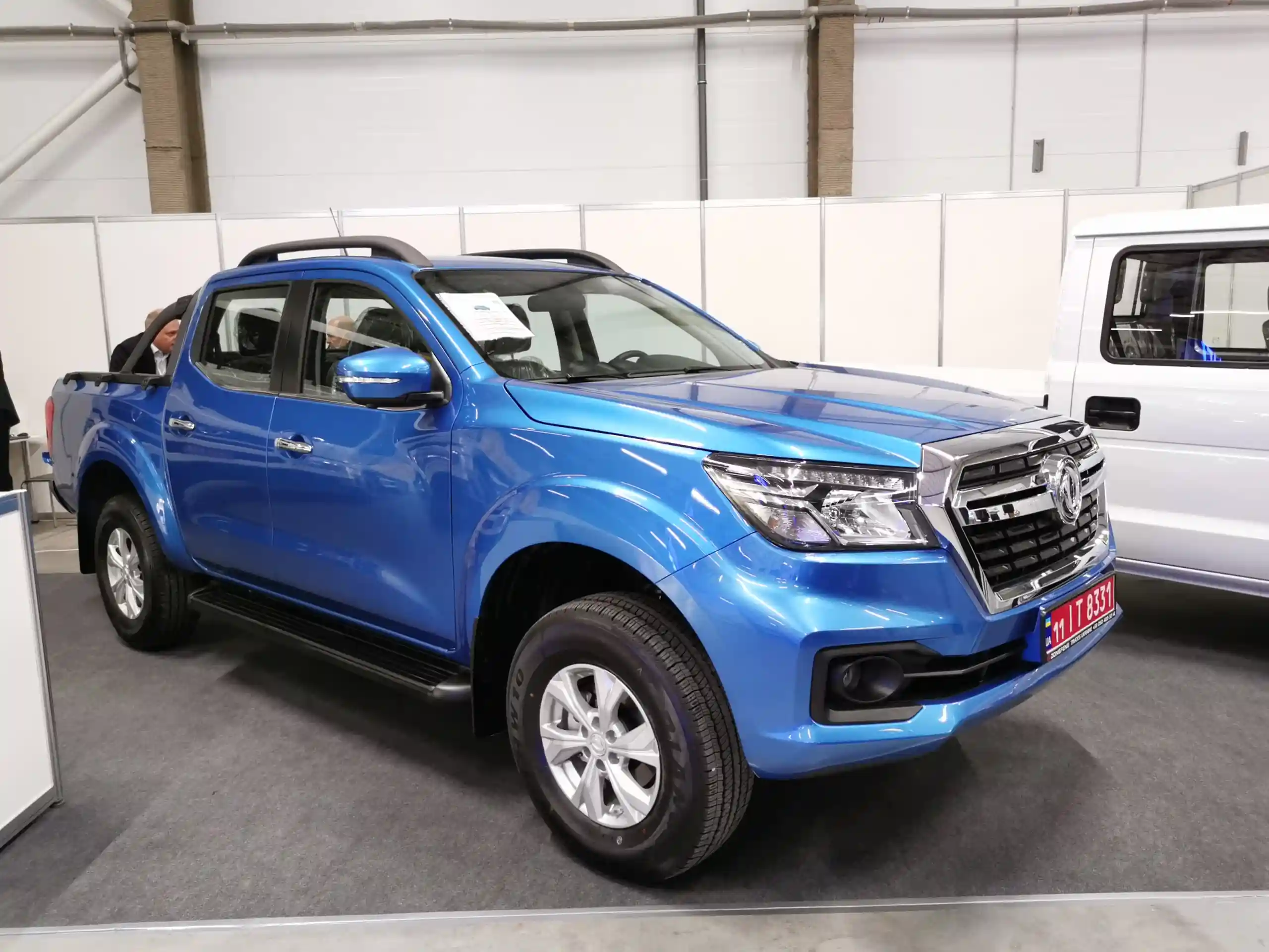 Рядом демонстрируется пикап – Dongfeng Rich6, с двухрядной 5-местной кабиной. Машина имеет грузоподъемность 740 кг. Двигатель – 2,5-литровый турбодизель Nissan ZD 25T5 мощностью 140 л. с. Коробка передач – механическая, 5-ступенчатая.