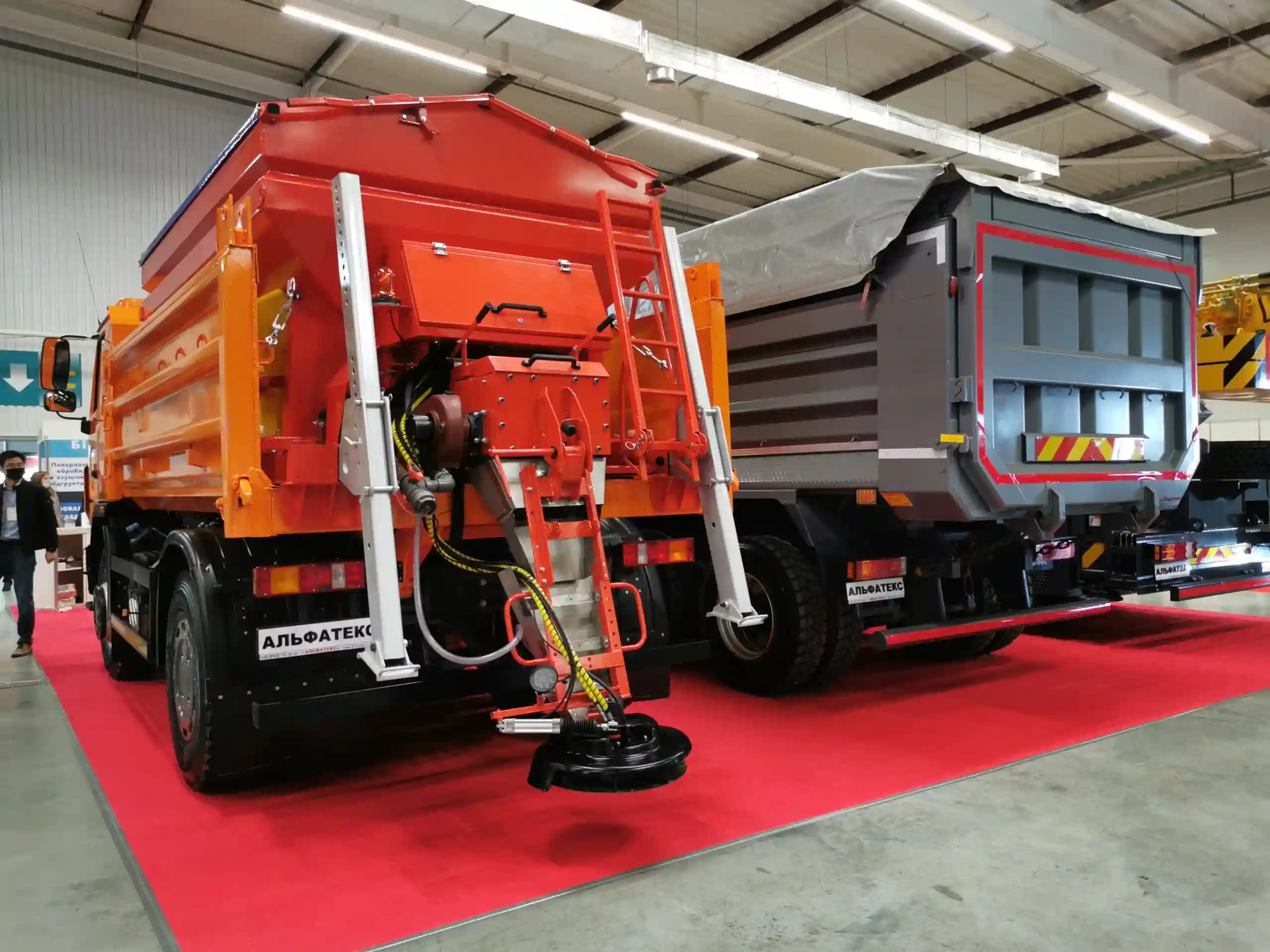 Кременчугский Завод коммунальной техники «Альфатекс» приехал на выставку с тремя экспонатами. Начнем с дорожно-комбинированной машины АТ МДК-08 на базе самосвала МАЗ-5550С3.