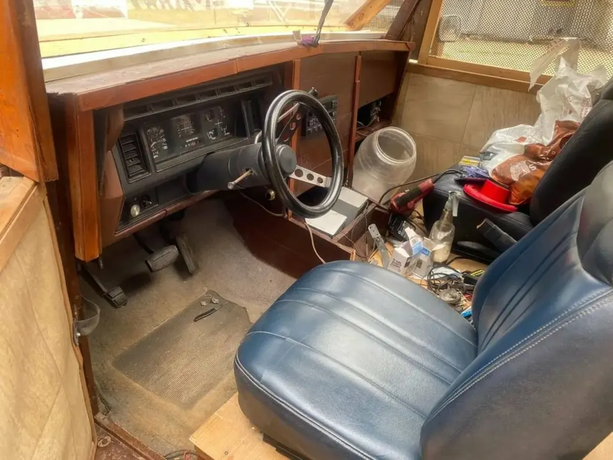 У салоні зі справжнього тільки сидіння, рульове колесо, ручне гальмо та панель приладів. Все решта дерев'яне. Дверні панелі зсередини затягнуті чимось схожим на лінолеум. На місці бокового скла — дрібна сітка.