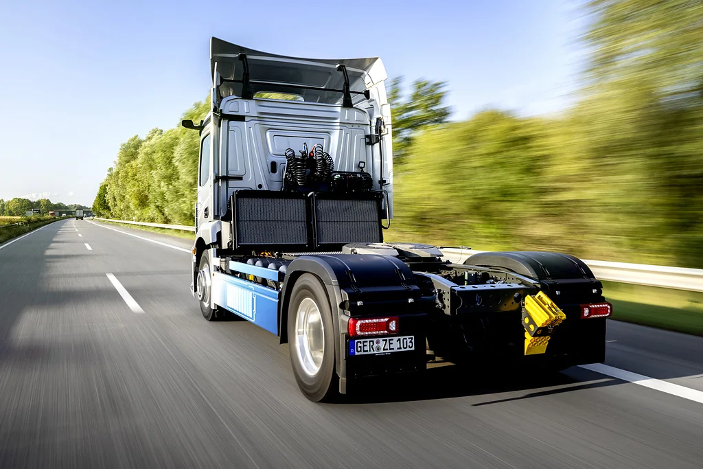 Електричний сідловий тягач, як і всі eActros, укомплектований зовнішньою акустичною системою Acoustic Vehicle Alerting Assist, що підвищує безпеку пішоходів. Також є система активного гальмування п'ятого покоління ABA 5 і система S1R, що сигналізує про знаходження пішоходів або велосипедистів у сліпій зоні при повороті машини праворуч.