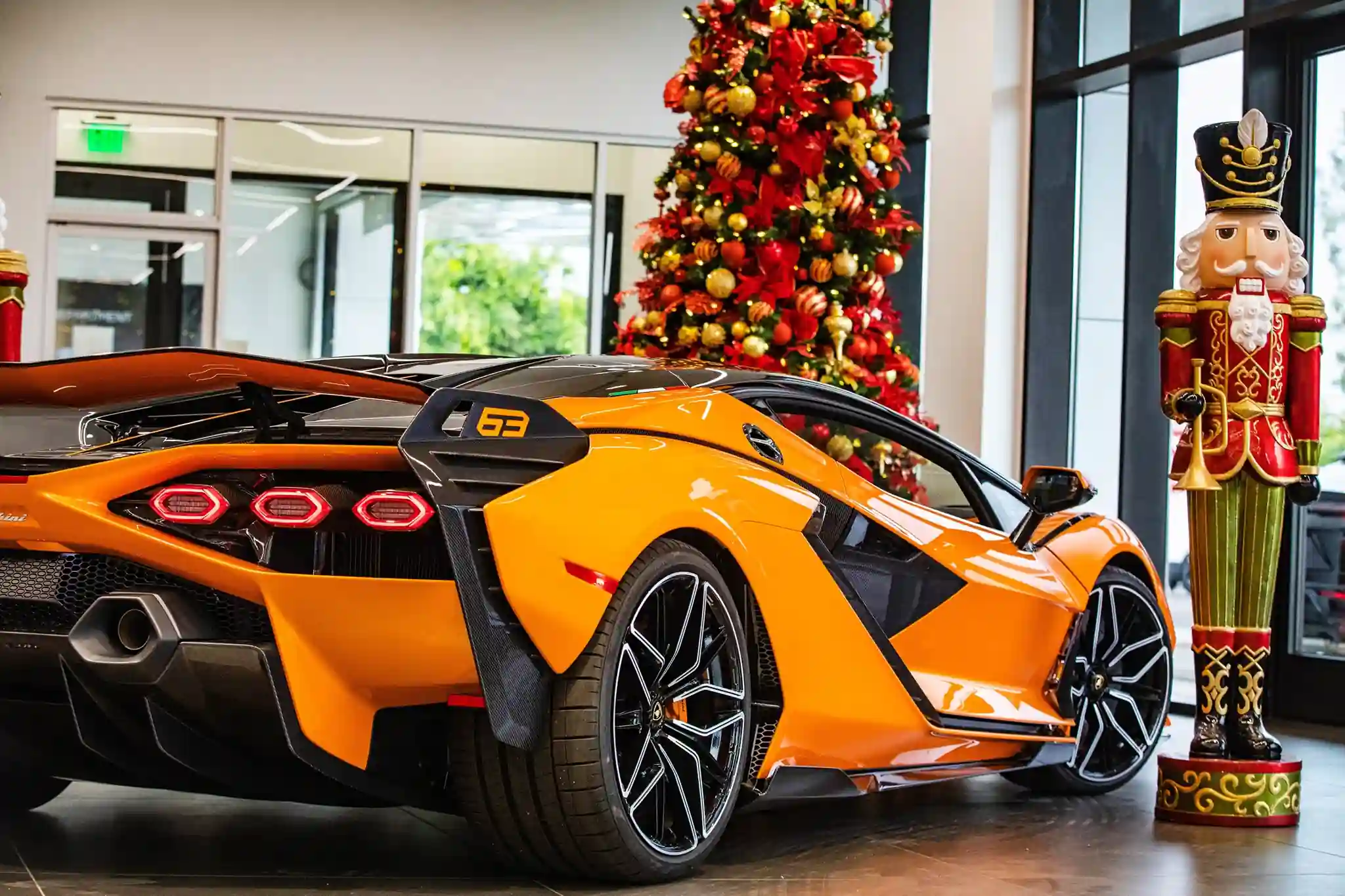 Так, руководитель дилерского центра Lamborghini в Калифорнии (США) воспринял именно как подарок Санты прибытие к ним суперкара Sian. Мужчина радовался как ребенок и называл это настоящим рождественским чудом, а все потому, что такой суперкар – единственный на всем континенте. Он окрашен в эксклюзивный оранжевый цвет Arancio Atlas, который дополняют глянцевые черные элементы из углеродного волокна.