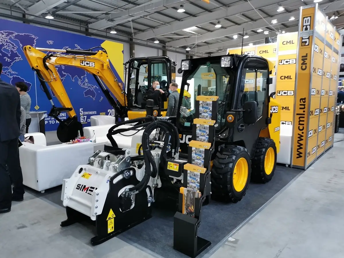 На стенді фірми CML була представлена техніка марки JCB. Це мінінавантажувач із бортовим поворотом — моделі 205, вантажопідйомністю 905 кг і двигуном потужністю 60,8 к.с., а також гусеничний екскаватор моделі 65R-1, масою 6601 кг, глибиною копання 4,01 м і двигуном в 61 к.с.