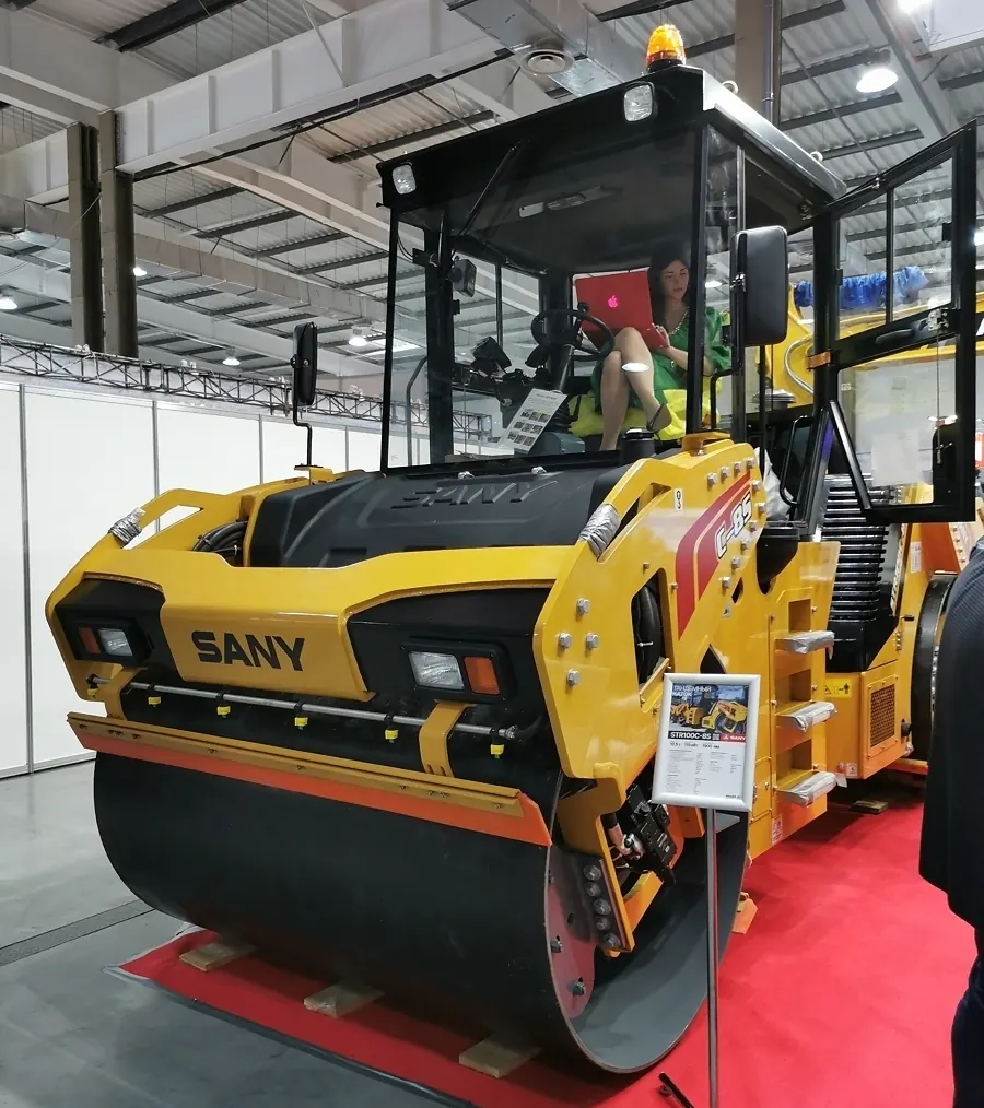 Поруч стояв і тандемний каток STR100C-8S масою 10,5 т, шириною вальця 1900 мм і двигуном Cummins QSB4,5 потужністю 162 к. с.